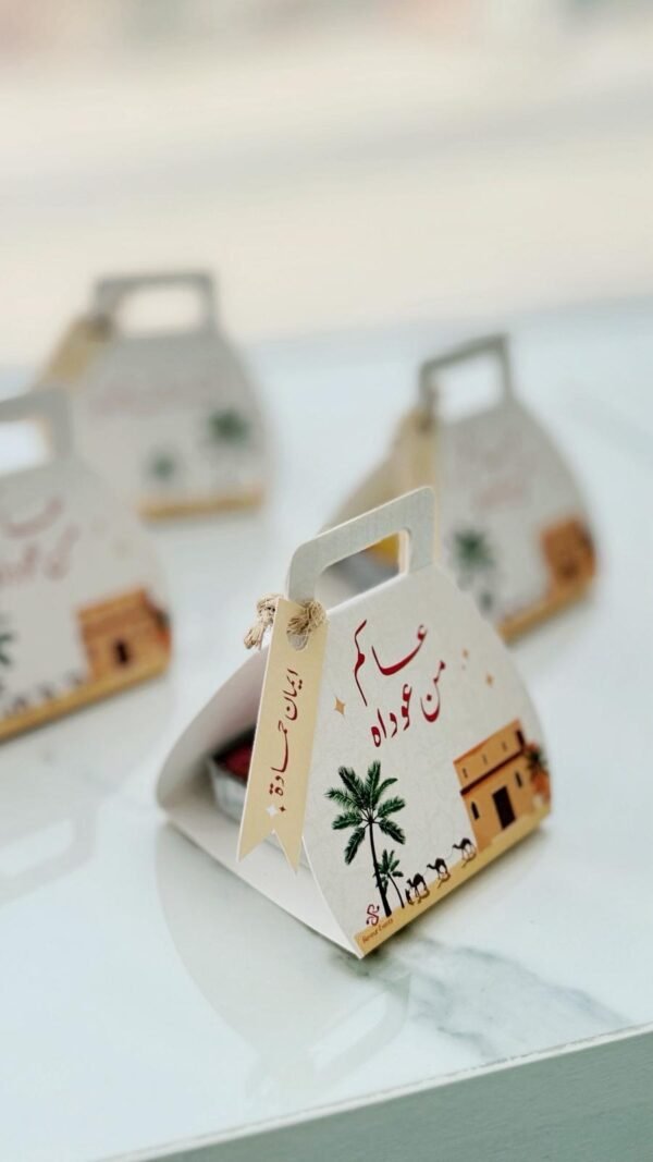 علبة بثيم القارعون مع تاق باسم الطفل مع قطعة جوكلت