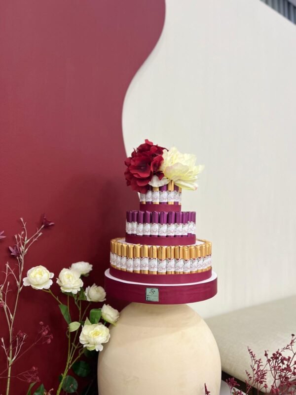 هرم جوكلت منسق بالورد ويحتوي على 85 حبة جوكلت
